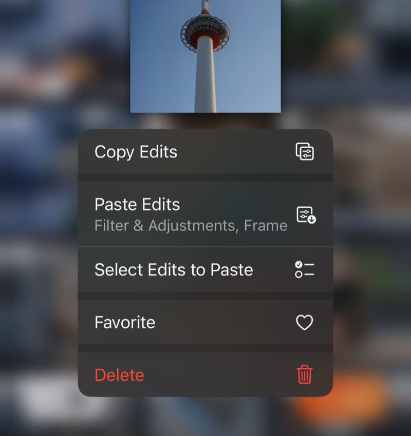 You can either long-press to paste photo Edits or enter the select mode to batch-paste photo Edits.