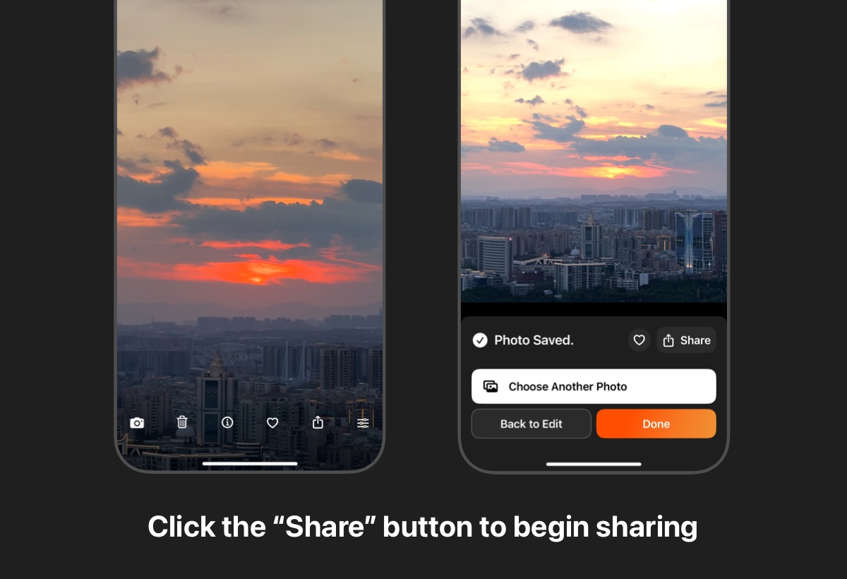 - Enter the full-screen view of an HDR photo and tap the "Share" button at the bottom;