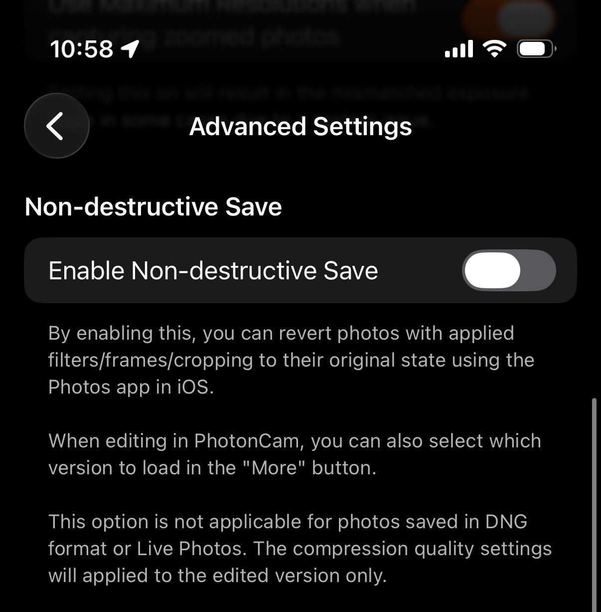 Go to Settings → Capture & Process → Advanced Settings, then enable the “Non-destructive Save” toggle.