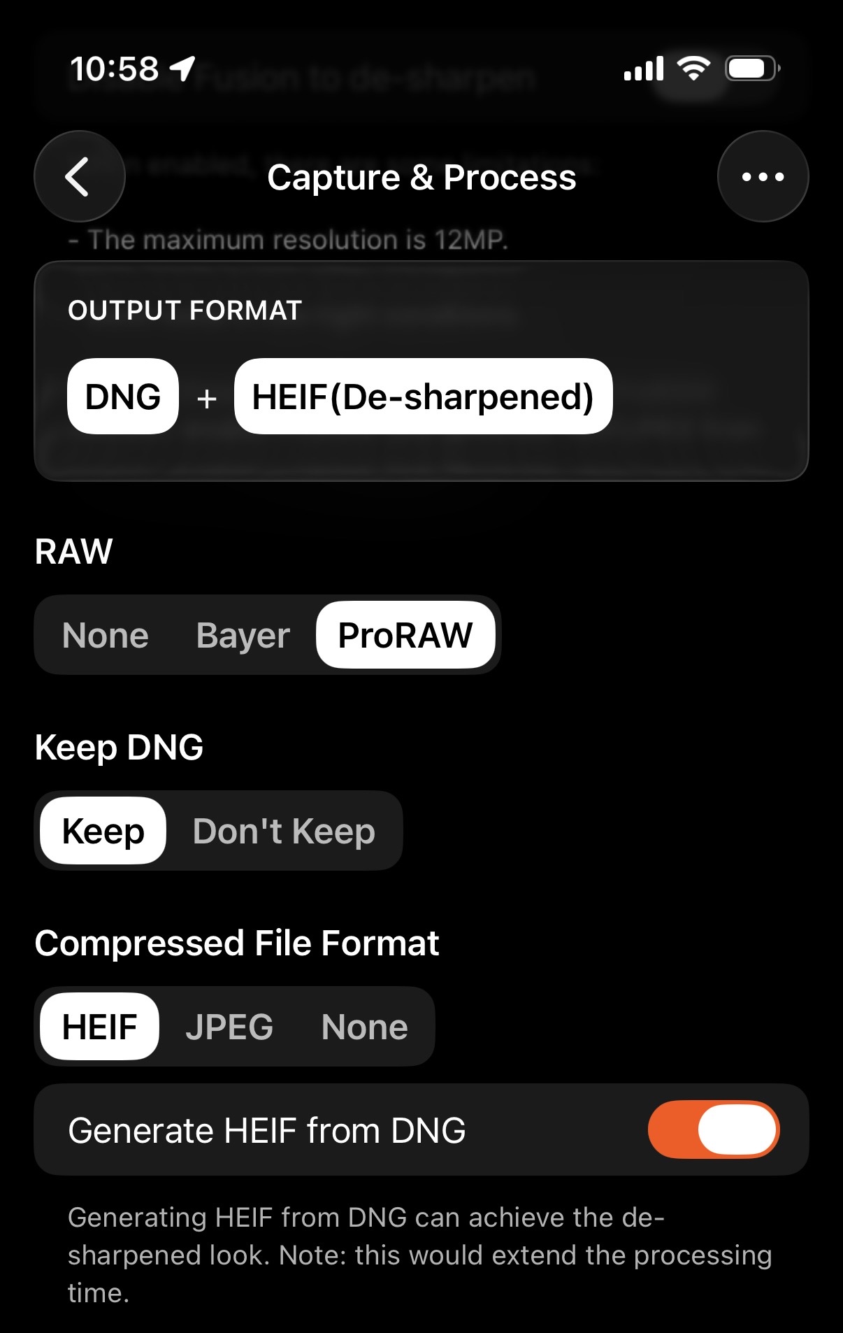 - Choose a RAW format (BayerRAW or ProRAW).