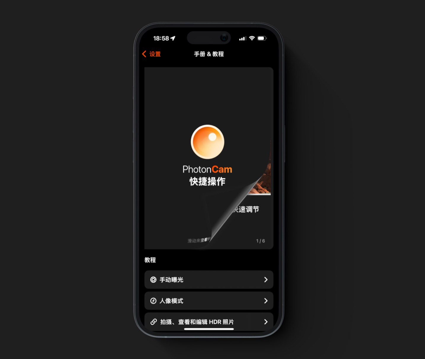 PhotonCam app 内有手册 & 教程页面。到「设置」-「手册和教程」页面以查看应用内手册。